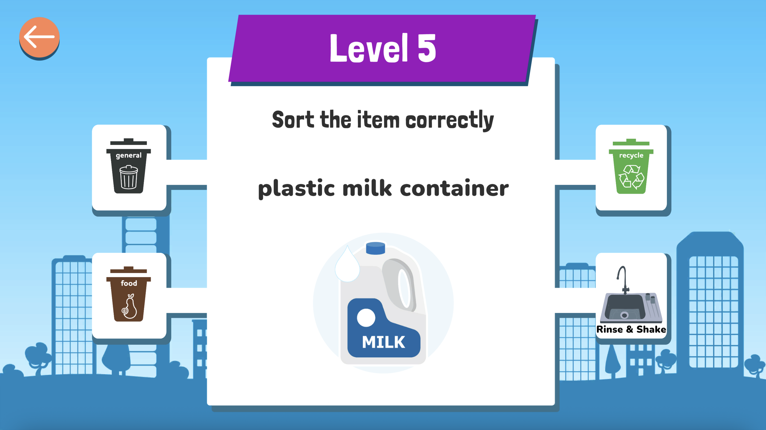 The purpose of the baseline level is to establish the players baseline knowledge and feed this back to the BOI Sustainability team to use in their future campaigns and waste communications. The BOI Waste game highlighted five waste items by featuring them in both the baseline and assessment levels.